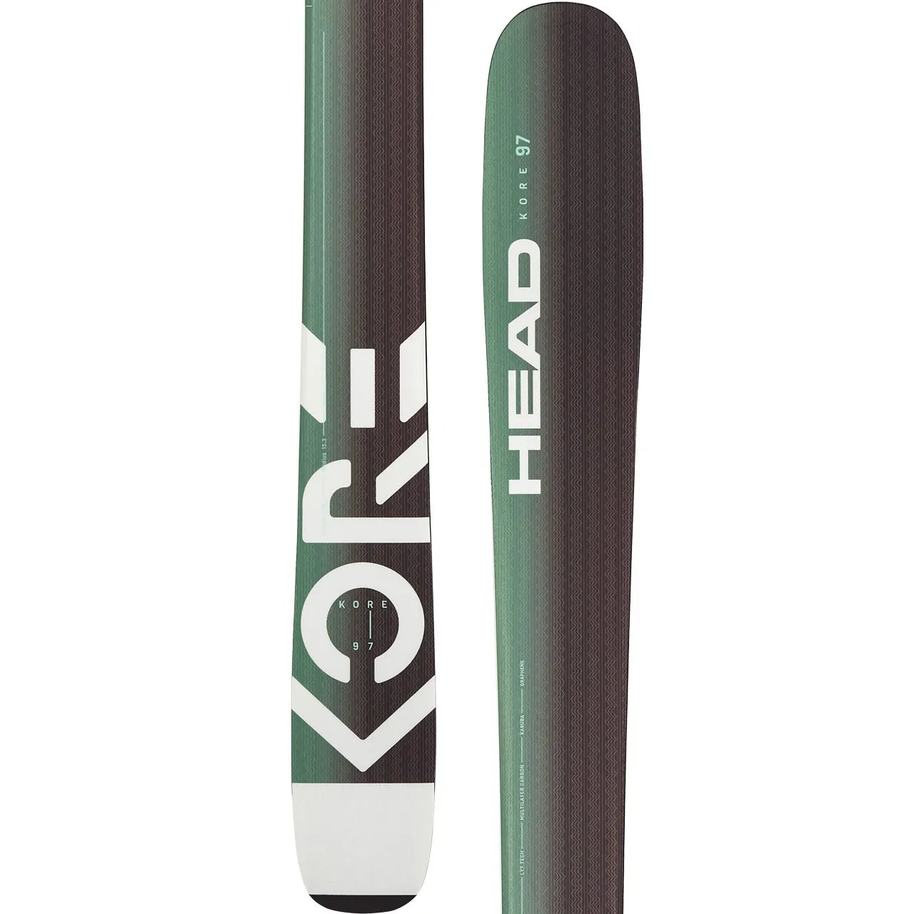 De materiaalmix vermindert het gewicht zonder aan prestaties in te boeten. Daartoe wordt het hightech materiaal grafeen gebruikt in de geribbelde punt en staart. De lichte maar stijve koolstofkern wordt omlijst door een triaxiaal koolstofweefsel, wat de ski stabiel en speels maakt. De nieuwe Top Sheet verhoogt de duurzaamheid van de ski en maakt de KORE 97 W tot wat hij is – een ski voor alle gelegenheden en avontuurlijke freeriders.
