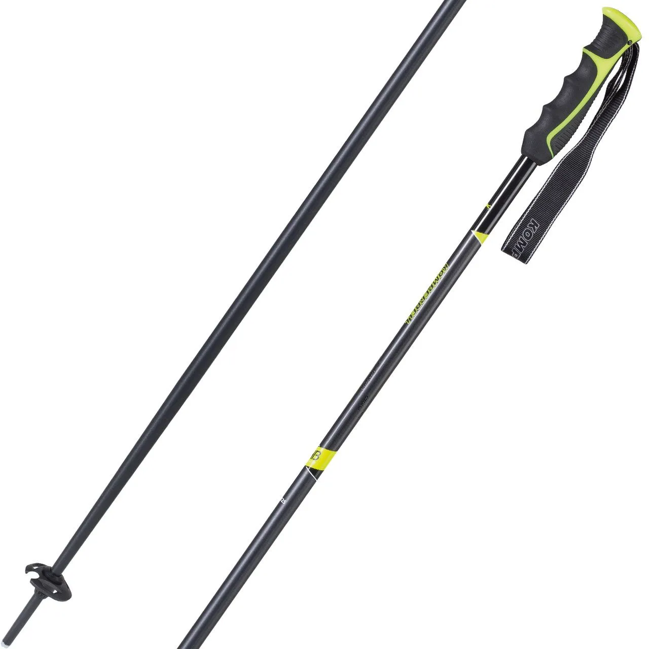 Robuuste aluminium stok voor de sportieve pisteskiër met gele accenten. De greep ligt bijzonder stroef in de hand en is qua kleur afgestemd op het moderne ontwerp van de stok.