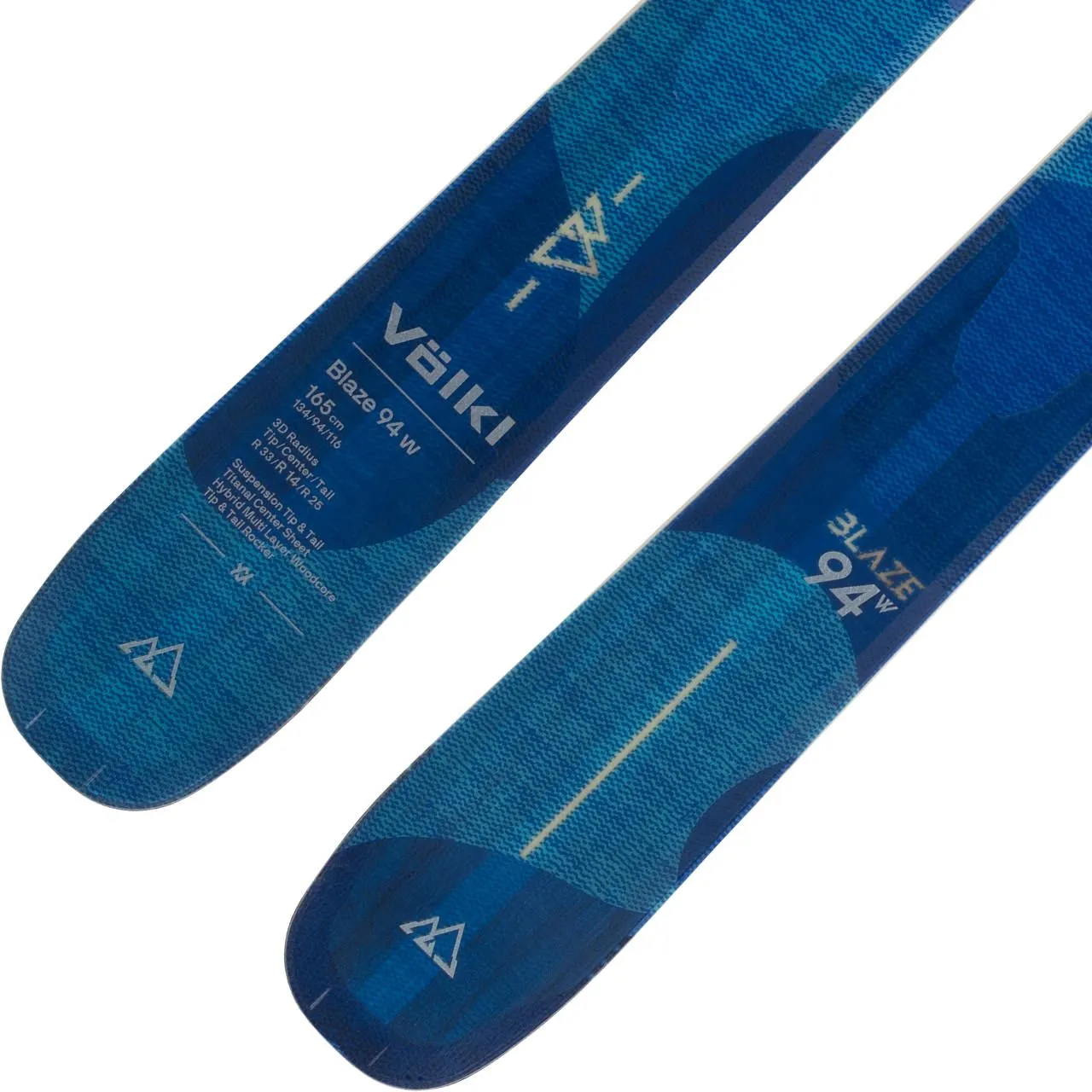 Een 0,3 mm dikke titaniumlaag onder de binding zorgt voor een indrukwekkend directe krachtoverbrenging en brengt de beweging van de rijder direct over in de bocht. Tegelijkertijd zorgen het lage titaangehalte en het lichte gewicht ervoor dat de Blaze 94 W ongelooflijk responsief is en weinig inspanning vergt om te bewegen. Hoewel de 3D Radius Sidecut en de Hybrid Multilayer Woodcore ontworpen zijn voor krappe swingradii, kunnen ze alle radii aan. Met een gewicht van slechts 1427 g (bij een lengte van 165 cm) en met Suspension Tip en Tail (een rubberachtige demper die opslokt wat in contact komt met de ski) is het ook een fantastische toerski. In het skigebied, buiten de piste of in de backcountry, de Blaze 94 W is ongelooflijk breed inzetbaar in alle omstandigheden.